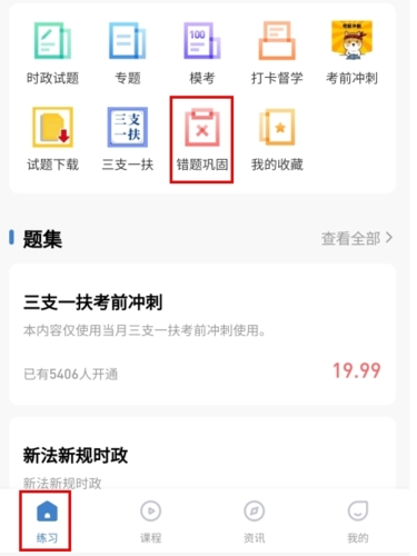 1、在练习页面点击错题巩固按钮;