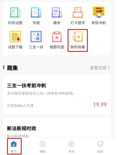 2、返回练习页面点击我的收藏按钮;