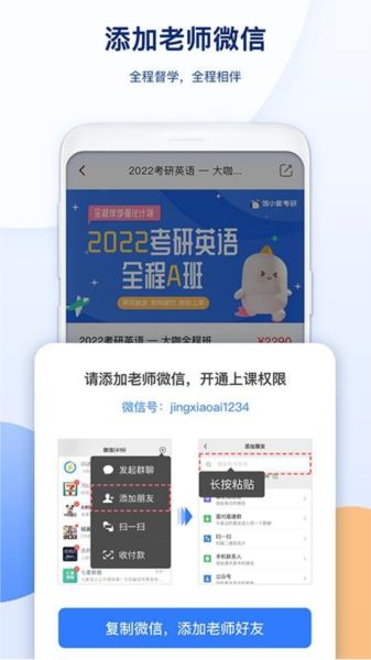 4、可添加辅导老师的微信,便于随时咨询学习中遇到的问题;