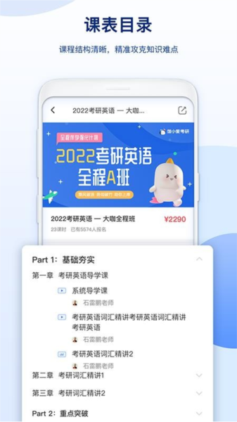 6、提供覆盖全科的考研课程,并根据考生基础推荐合适班级,提升学习效率;