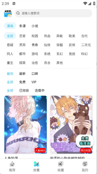 3、分类功能按题材、时间及类型对漫画进行归纳。