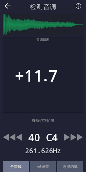 4、应用可自动识别音程,识别后立即开始检测;
