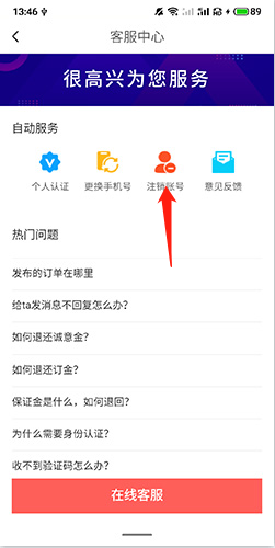 3、在客服中心选择“注销账号”功能,随后根据页面指引完成账户注销操作。