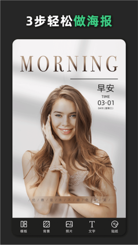 青柠海报设计app是一款功能强大的手机端专业设计工具,用户能够借助它快速完成各类海报创作。软件内置丰富的图片编辑能力,包括添加贴纸、文字与水印,也支持裁剪、加边框及拼图等操作。同时提供大量可免费使用的海报模板,方便用户直接套用并修改,从而高效产出视觉作品。