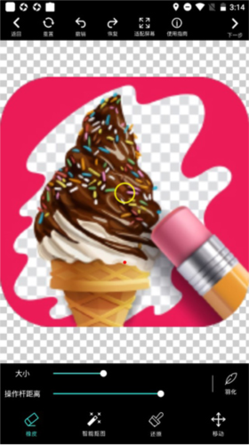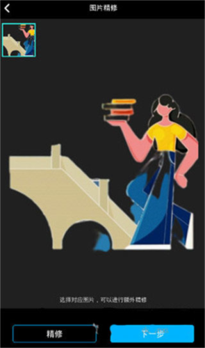 3、预览抠图效果,不满意可使用精修工具优化边缘,满意则点击“下一步”进入编辑界面。
