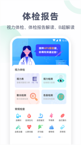 体检报告:支持视力体检、体检报告解读及B超解读;