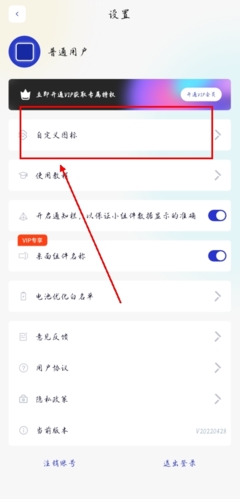 2、在登录信息下方找到【自定义图标】选项并点击;