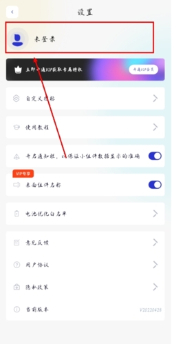 2、在设置页顶部点击【未登录】区域;
