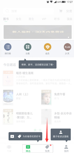 新用户首次打开应用,可点击底部导航栏的【免费】入口。