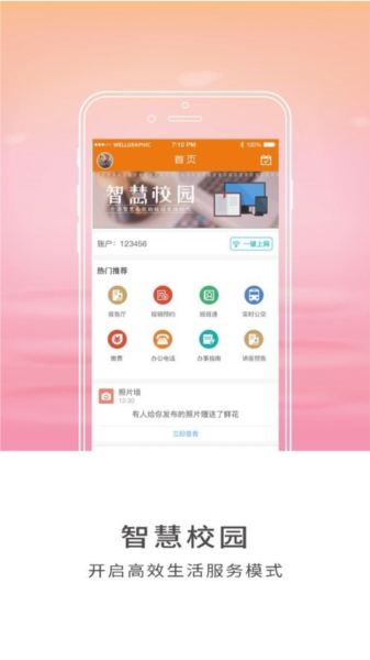 2.随手拍修:校内需总务处维修的项目,可通过手机快速报修,信息直接送达维修人员;