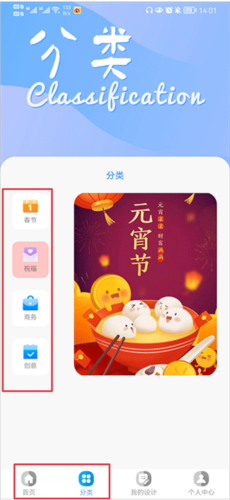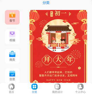 1、打开应用,在首页或分类中选定要制作的海报主题。