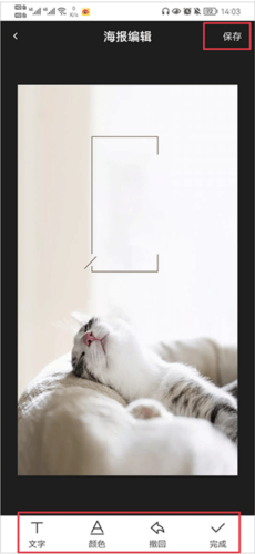 3、使用底部编辑工具完成海报制作后,点击保存即可将图片下载至设备相册。