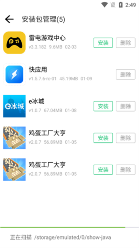 6、该功能会扫描手机中所有的安装包文件,而不仅限于本应用下载的内容;不需要的安装包可一键删除。