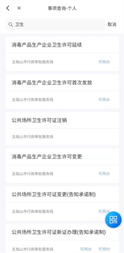 2、在搜索框输入办理事项的关键字进行查询,例如输入“卫生”。