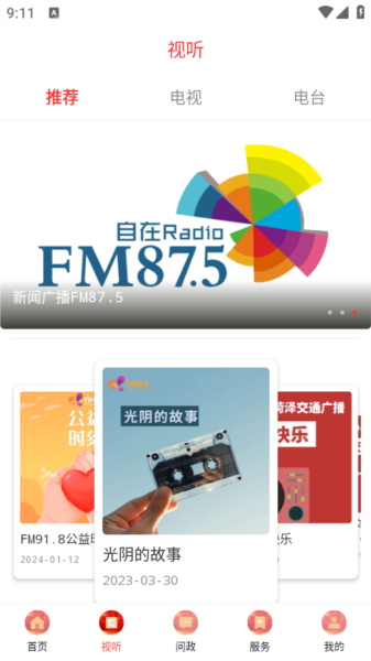 3、设有音乐广播与新闻广播两个直播专栏,支持用户在线实时收听观看。