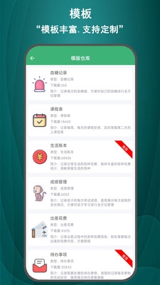 2、利用丰富的记录模板可以快速完成数据填写,多种模板可供自由下载使用;