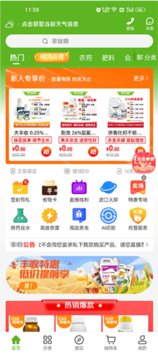 2. 点击农药分类,可查看各类常见且效果显著的正规产品;
