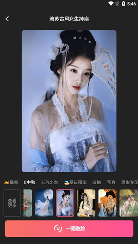 3、软件提供大量精美的图片融脸素材,仅需一张照片就能演绎多种风格角色;