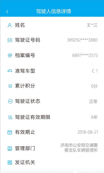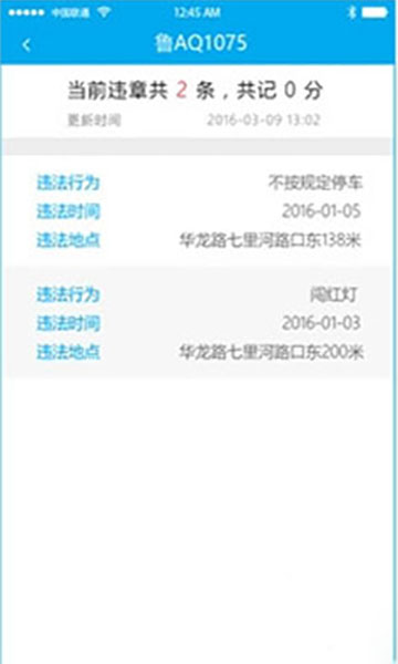 清晰展示每条违章记录的具体时间、地点、罚款金额、扣分及处理状态;