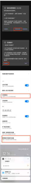打开黑阈应用,根据弹窗提示选择无线调试端口并进行无线配对。