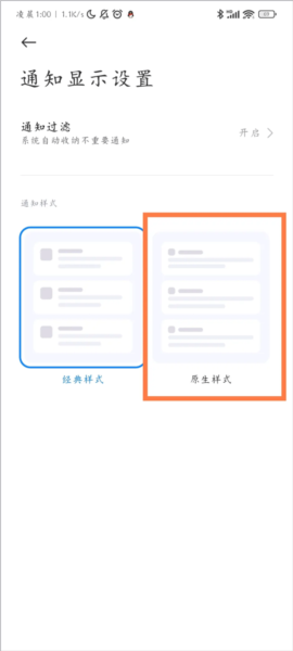继续进入设置的通知与控制中心,将通知显示样式改为原生样式,以避免后续授权弹窗不出现的问题。