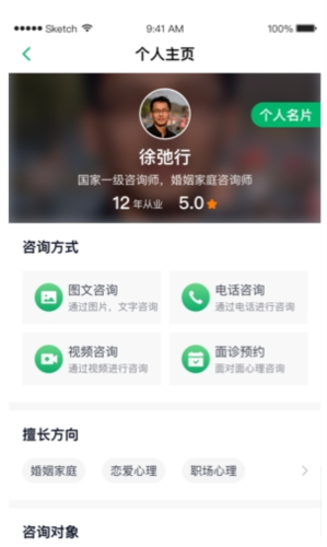 3.【咨询师】用户可以通过详细资料了解每位咨询师的专长领域与过往服务评价,从而做出合适的选择。