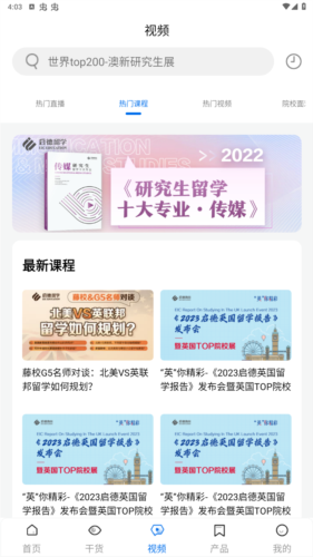 3、【视频页面】:汇集大量留学主题视频,内容涵盖院校解析、申请攻略、专业介绍及留学生活分享等。