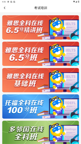 应用内提供了丰富多元的功能板块,用户可随时查阅国外大学排名、英语及小语种考试资讯、离境指南与热门直播等内容。这里不仅汇集了详尽的留学资料,还提供相关的教学资源与课程。系统将结合用户当前的学习状况、语言水平以及专业兴趣,为其规划个性化的提升路径,并配套提供留学考试培训、学术英语课程及研学项目等多项服务。