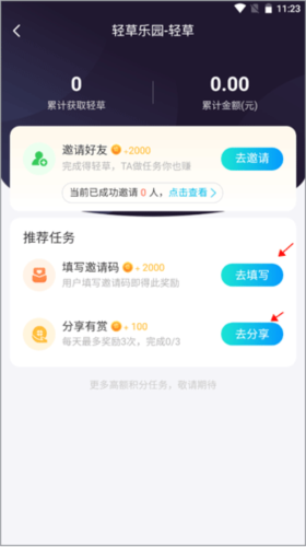 2、查看个人持有的轻币数量,点击下方的“赚轻草”入口。