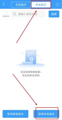 在本地音乐栏目中浏览设备内音频文件,选取所需文件即可导入作为背景音。
