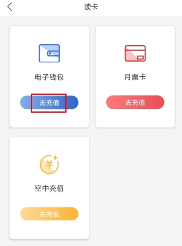 2、在读卡界面选择“电子钱包”选项,然后点击“去充值”;