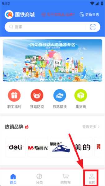 下载安装后打开国铁商城应用,进入首页后点击底部“我的”选项。