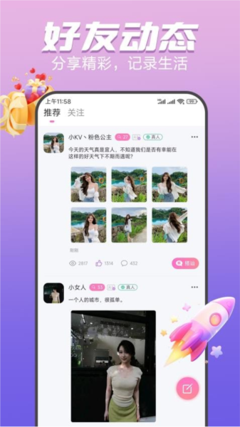你可以在动态广场记录并分享生活故事,留存美好瞬间;