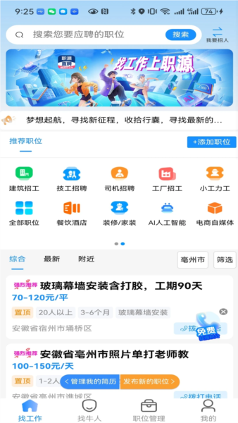 提供建筑装修、工厂制造、物流运输、餐饮服务、销售客服等多行业招聘求职服务;