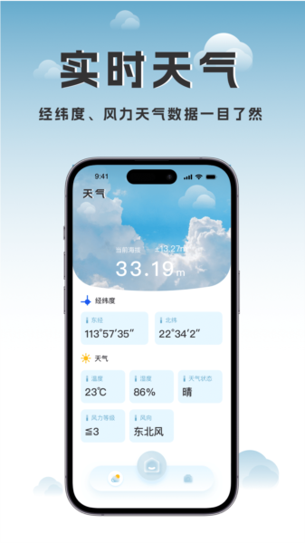 实时测量海拔,不依赖网络也能测算所在地的海拔与经纬度,支持米和英尺单位切换。