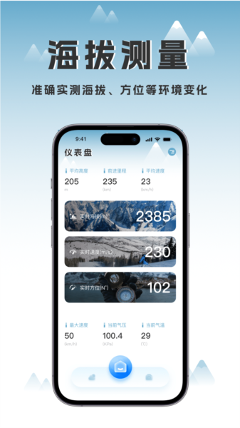 1、软件内置高度计,可帮助用户实时测量所在位置的海拔,操作简便;