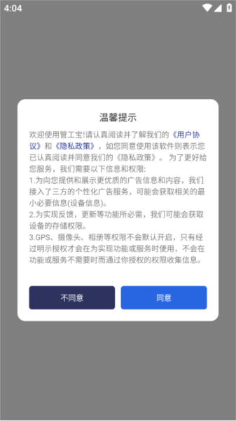 首次启动软件需要同意用户协议与隐私政策,之后即可进入主界面。