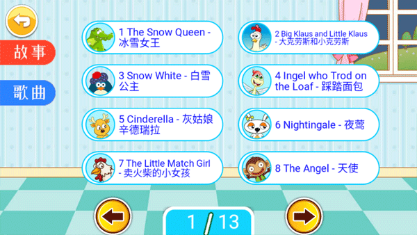7、第四个模块为故事歌曲;集合众多英文歌曲与故事,点击后自动播放。