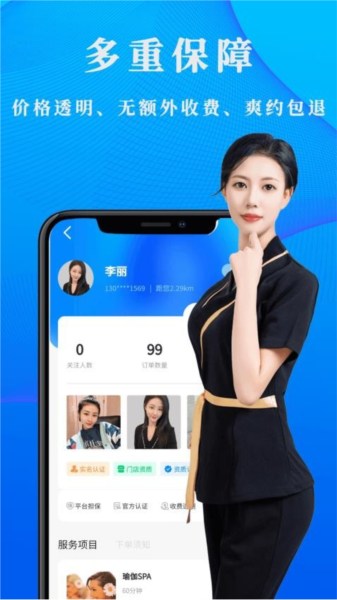 2、适合按摩;用户能依据自身身体状况,挑选合适的技师进行按摩;