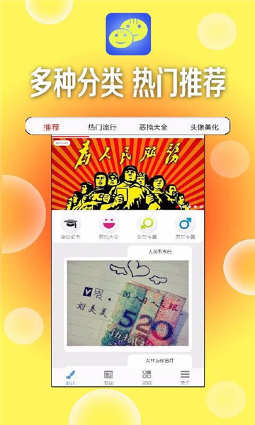 2、设有毕业证书、恶搞大全、男生女生专题等设计专区;