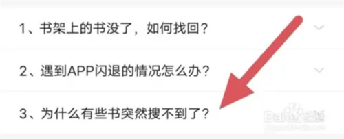 第三步,进入帮助反馈页面后,点击查看【为什么有些书突然搜不到了?】的说明。