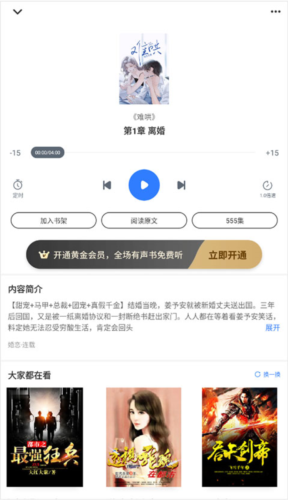 2、点击该图标即可启动听书功能,同时可以设置定时关闭,方便控制收听时长。