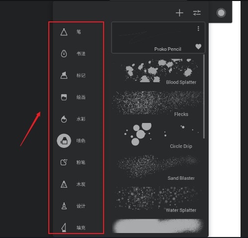 2、艺术家最爱:将广受欢迎的画笔变体集中展示于专属类别中,例如经典的萨金特画笔。