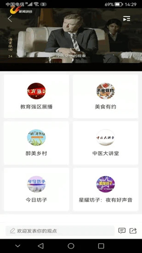 2、平台实现了电视大屏与手机小屏的互联互通,融合直播、点播、便民服务与线上活动;