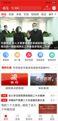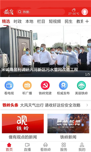 3、设有多个融媒服务专区,主页面包含融媒矩阵、美丽铁岭、平安铁岭等板块。