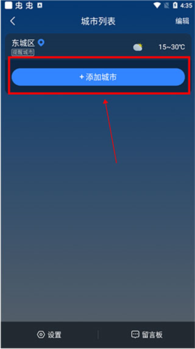 2、在城市列表页面选择添加城市选项;