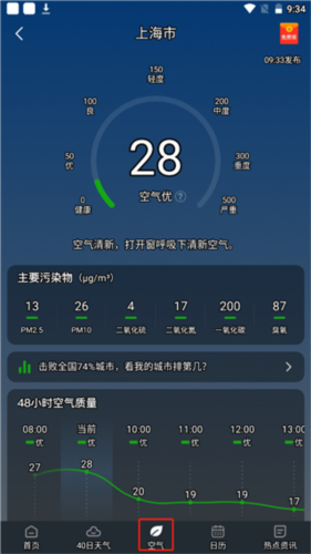 3、点击空气板块,获取精确的空气质量数据;