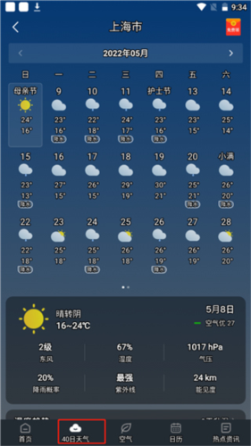 2、点击40天气查看中长期气象预测,了解后续天气趋势;