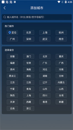 3、通过搜索栏输入或直接定位选择目标城市;