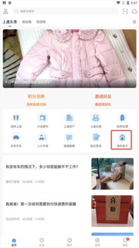 1、在设备上安装并打开上虞论坛应用,于主界面中找到并点击“我的帖子”入口。